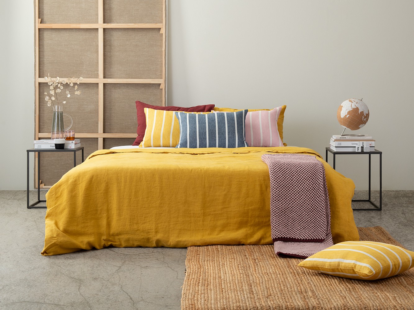 Чехол на декоративную подушку в полоску горчичного цвета из коллекции Essential добавит настроения в ваш интерьер. Он выполнен изо льна, гипоаллергенного материала, который прост в уходе и долгое время сохраняет презентабельный внешний вид. Яркий практичный чехол горчичного оттенка впишется в любой интерьер и будет хорошо сочетаться с остальными подушками. Модель застегивается на потайную молнию. Чехол представлен в трех цветах и двух размерах. Размер: 45х45 см ! Деликатная стирка при максимальной температуре 30º C ! Гладить при максимальной температуре 150º C ! Барабанная сушка запрещена ! Не отбеливать ! Возможна сухая чистка