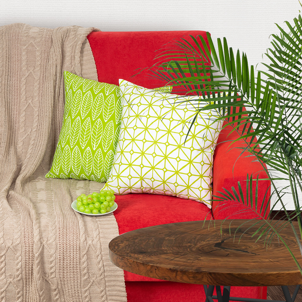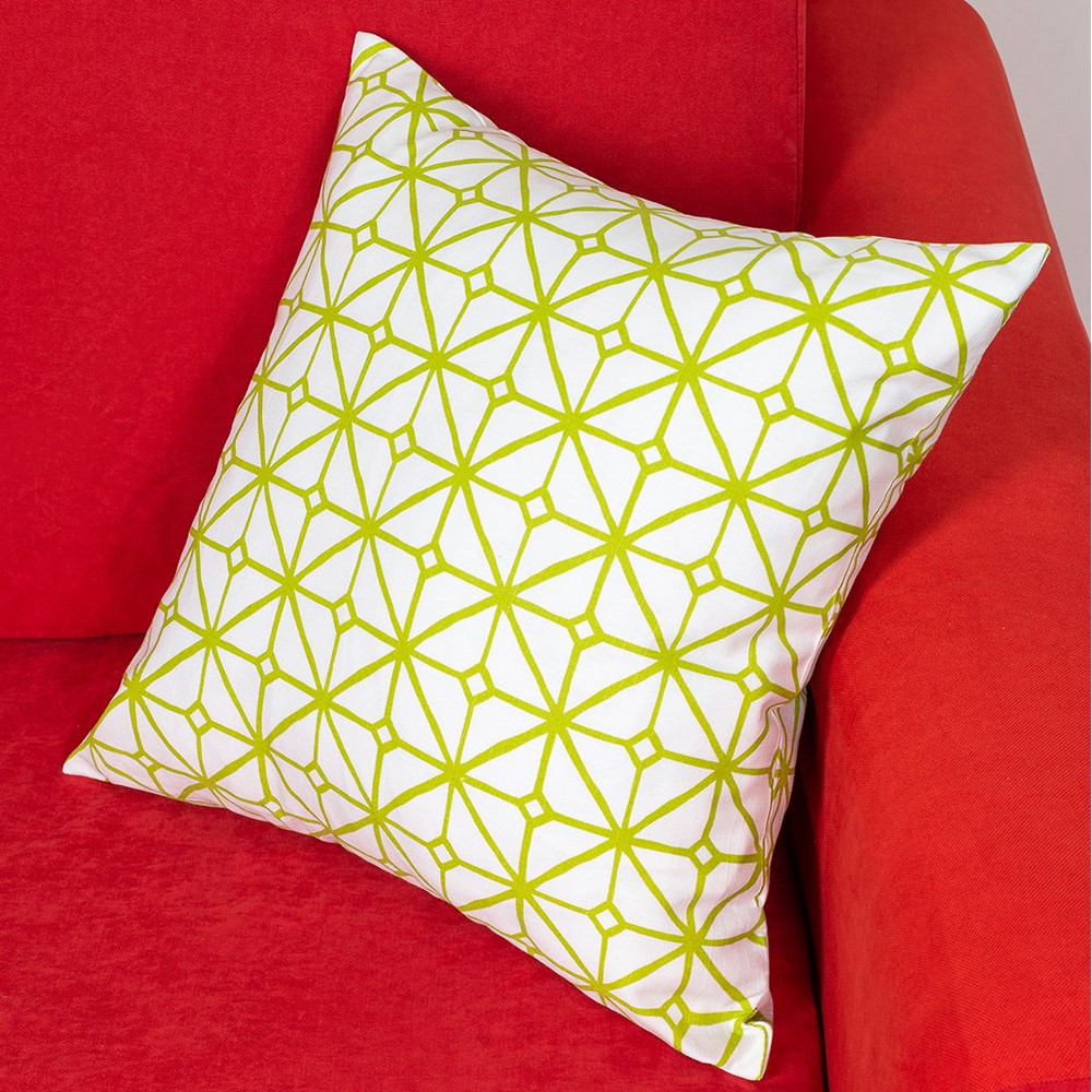 Подушки с геометрическим узором изготовлены из натуральной хлопковой ткани. Наполнитель держит форму длительное время и не проминается. Экологичная ткань позволяет использовать подушку не только в качестве элемента декора интерьера, но и для дневного сна.