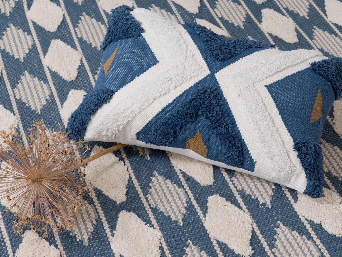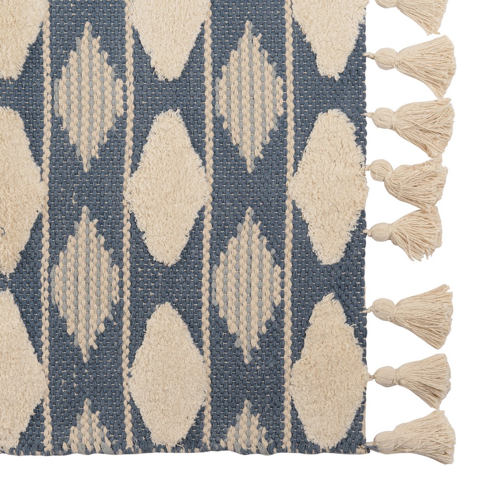 Ковер из хлопка синего цвета Argyle из коллекции Ethnic украшен контрастным геометрическим принтом и пышными кисточками по бокам. Модель органично впишется в скандинавский стиль или минимализм. Ковер можно повесить на стену в качестве арт-объекта, поместить на пол возле дивана или кровати. Изделие на подкладке, выполнено из прочного высококачественного хлопка, край с изнаночной стороны укреплен киперной лентой, исключающей деформацию. Ковер представлен в нескольких размерах. Засохшие пятна можно удалять соскабливанием мягкими щетками в направлении к центру пятна, а влажные — бумажными салфетками или тканью с использованием мыла или мягкого моющего средства. Перед использованием изделия обязательно ознакомьтесь с правилами ухода на этикетке. Обратите внимание, что многие товары из коллекции Ethnic выполнены вручную, поэтому они могут незначительно отличаться друг от друга размером, цветом или рисунком.