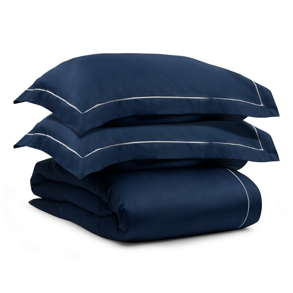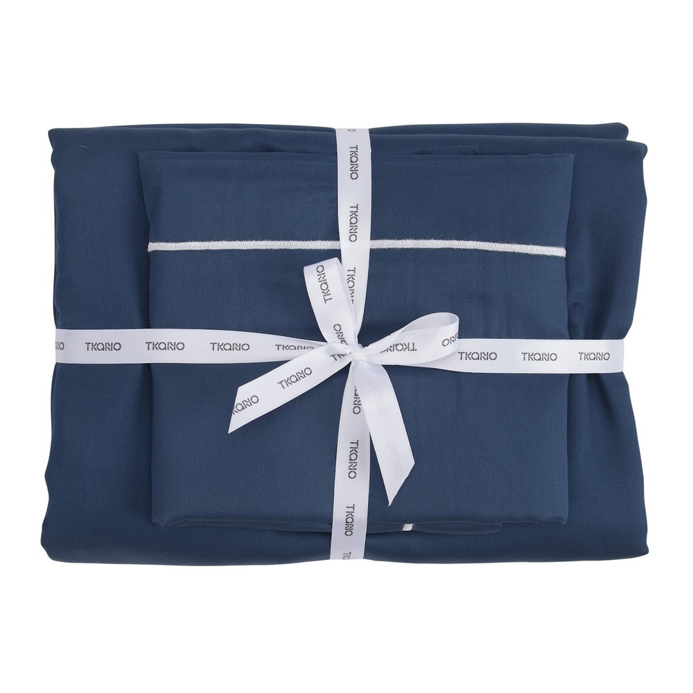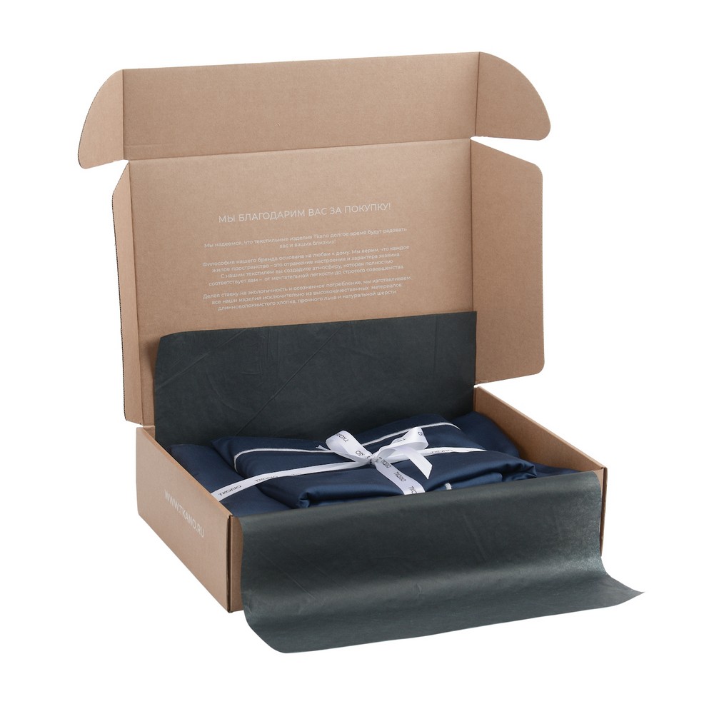 Сатиновый комплект постельного белья повышенной плотности в 300ТС станет прекрасным подарком: насыщенный темно-синий оттенок и 100% натуральный египетский хлопок в составе придется по вкусу каждому. Набор уже упакован в крафтовый бокс. В состав комплекта входят: - 1 пододеяльник 200х220; - 2 наволочки 50х70 - простыня – 240х270. ! Максимальная температура стирки 30º C ! Гладить при максимальной температуре 150º C ! Возможна барабанная сушка при низкой температуре ! Не отбеливать ! Сухая чистка запрещена