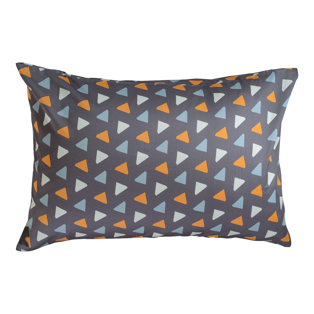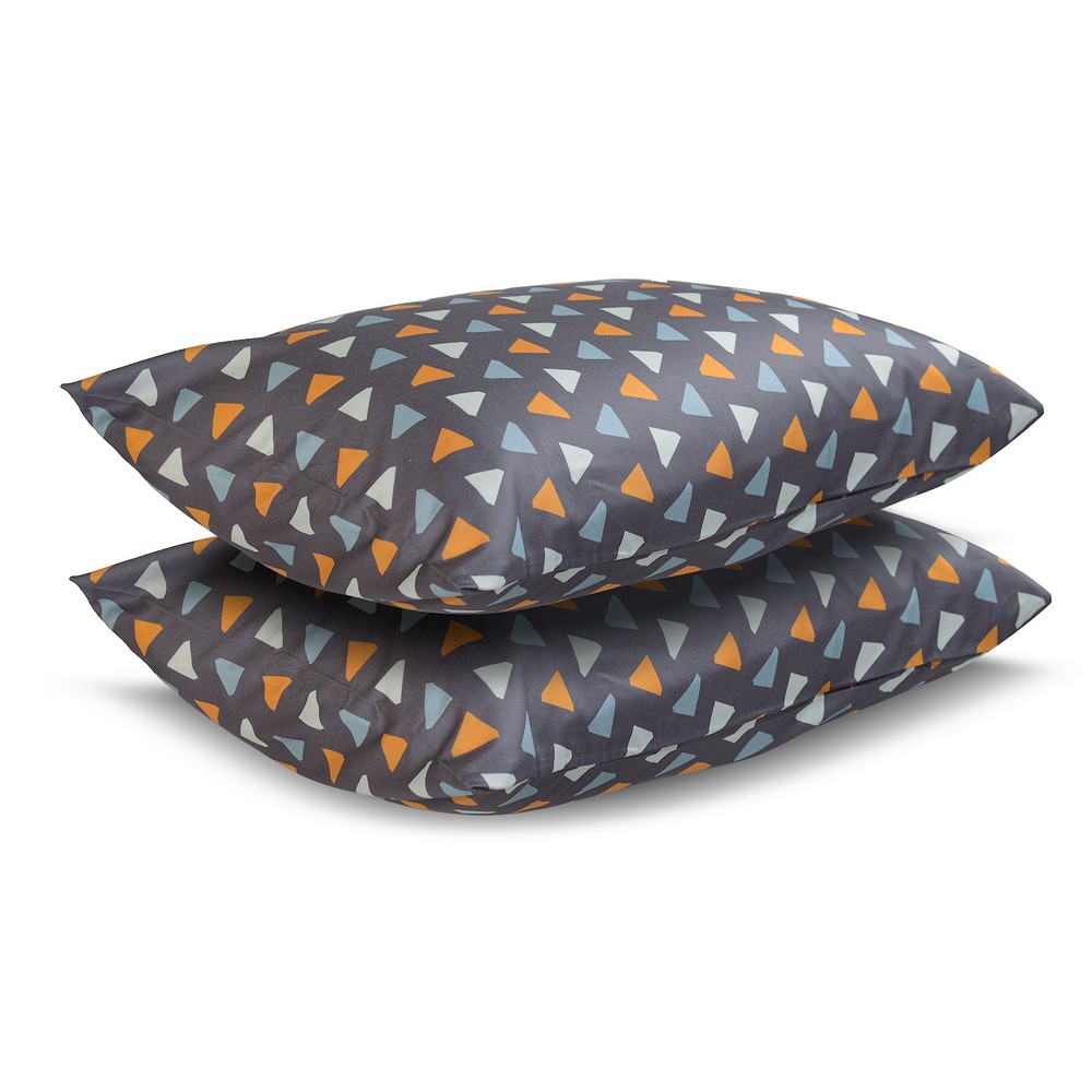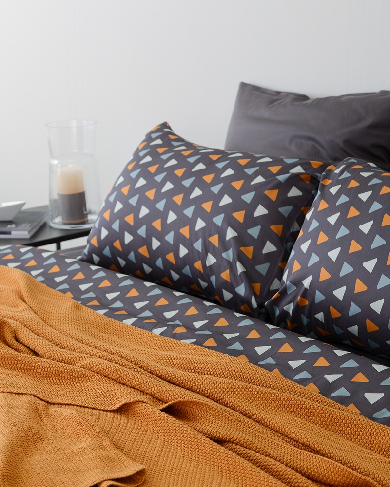 Комплект из двух наволочек с геометричным принтом Triangles в сочетании с насыщенным темно-серым цветом станет прекрасным дизайнерским акцентом в интерьере любой спальни. Гладкий, приятный на ощупь материал плотностью 210 ТС отличается особым способом пряжи – нити переплетаются в скрученном виде, что придает ткани дополнительную прочность. В комплекте 2 наволочки 70х70 см с системой закрытия клапан. Упаковка – брендированная крафтовая коробка. ! Максимальная температура стирки 60º C ! Гладить при максимальной температуре 150º C ! Сушить горизонтально ! Не отбеливать ! Возможна сухая чистка