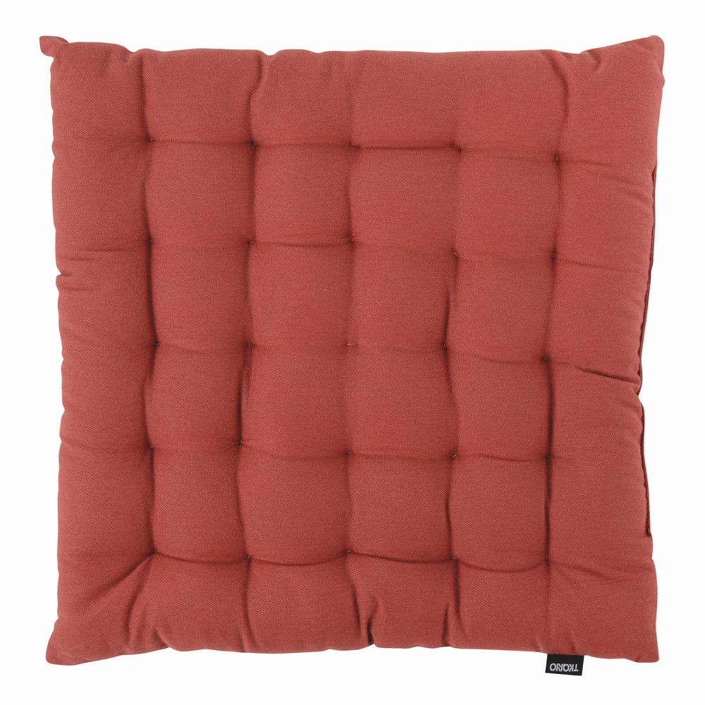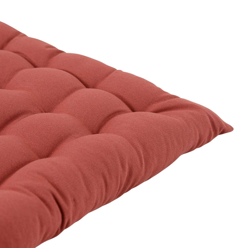 Подушка на стул из хлопка терракотового цвета из коллекции Prairie – практичное и стильное украшение кухонной мебели. Однотонное изделие в лаконичном дизайне органично впишется в любой современный интерьер. Подушку можно использовать в качестве подкладки на деревянные или металлические стулья. Благодаря плотному наполнителю из полиэстера изделие не потеряет свою форму. ! Максимальная температура стирки 40º C ! Гладить при максимальной температуре 150º C ! Барабанная сушка запрещена ! Не отбеливать ! Возможна сухая чистка