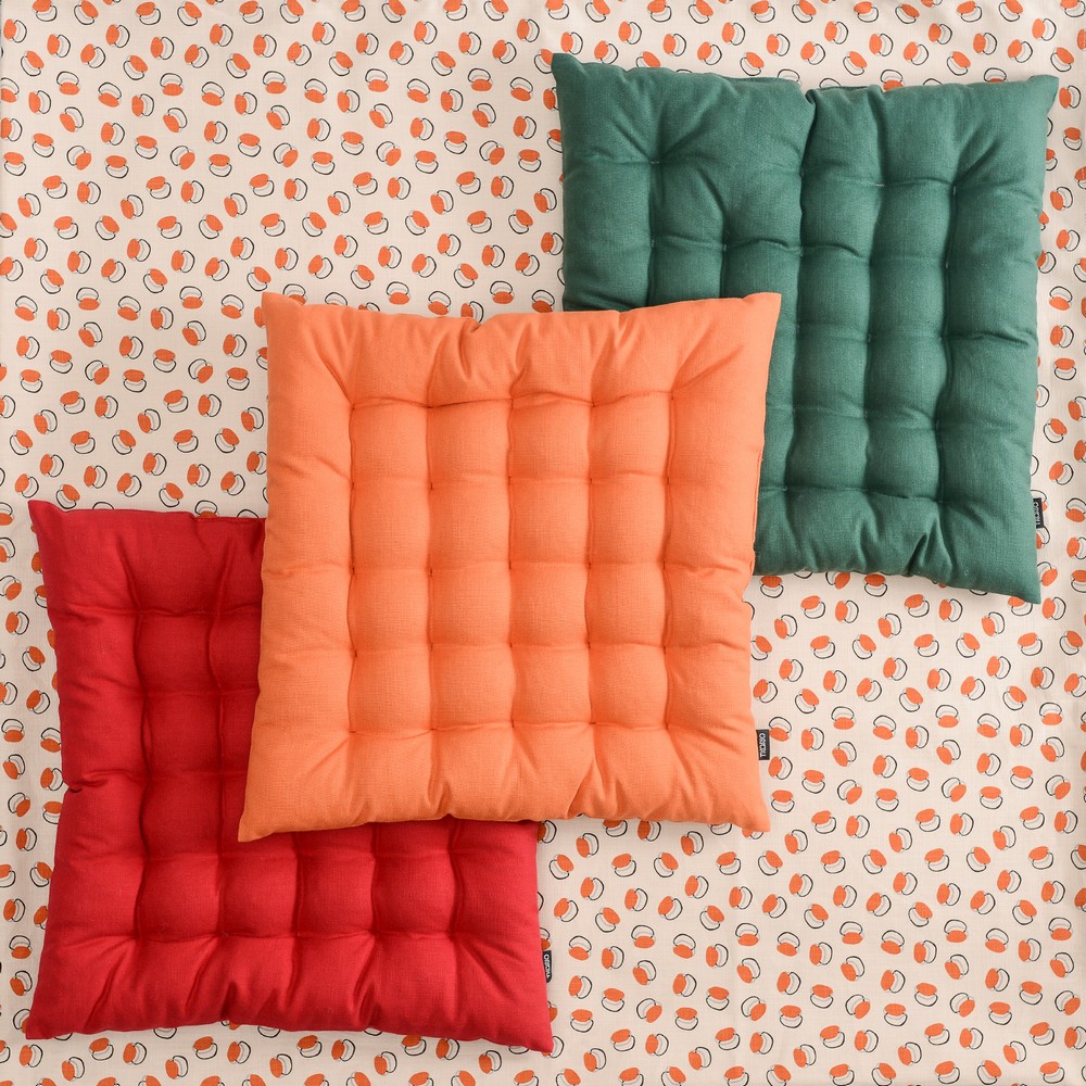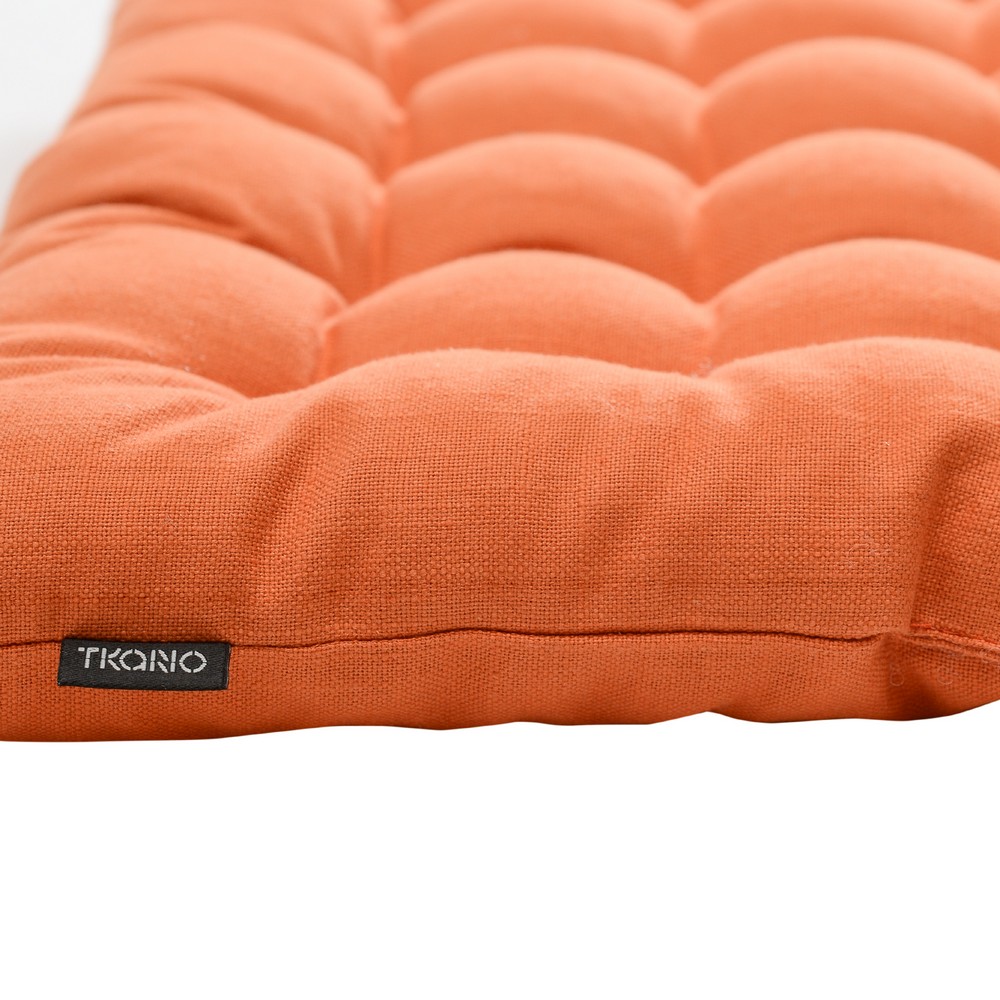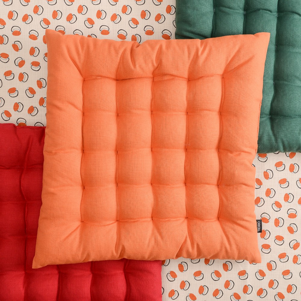Подушка на стул оранжевого цвета из коллекции Russian North выполнена из хлопка. Она станет практичным и стильным украшением кухонной мебели. Изделие в лаконичном дизайне органично впишется в любой современный интерьер. Подушку можно использовать в качестве подкладки на деревянные или металлические стулья. Благодаря плотному наполнителю из полиэстера изделие не потеряет свою форму. Тип плетения: кулирка. ! Максимальная температура стирки 40º C ! Гладить при максимальной температуре 150º C ! Барабанная сушка запрещена ! Не отбеливать ! Возможна сухая чистка