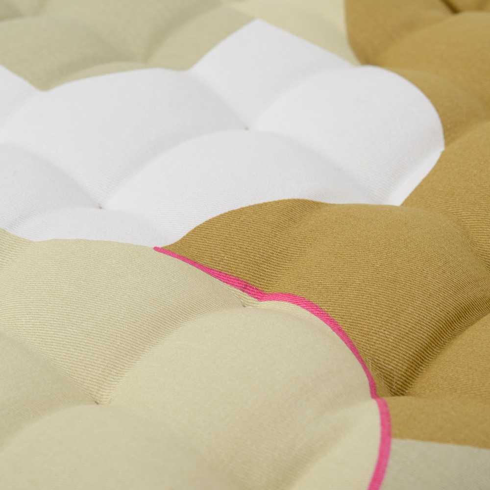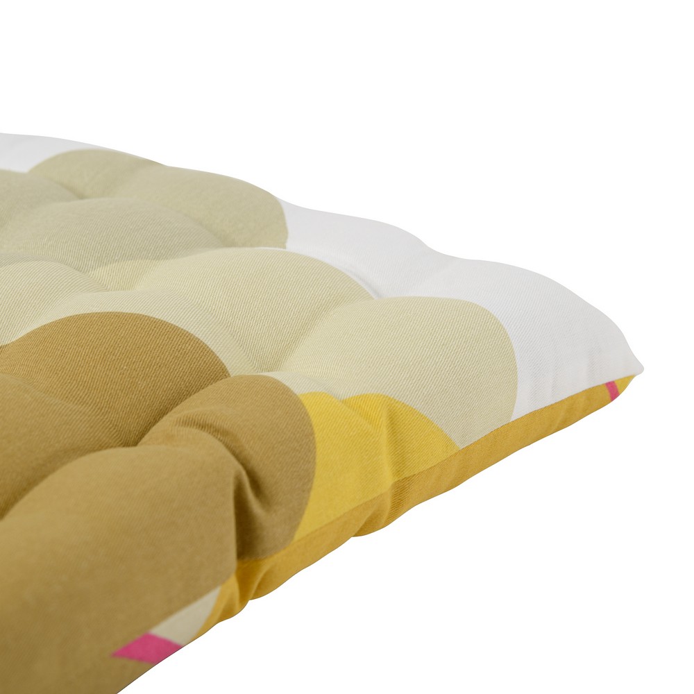 Подушка на стул из хлопка горчичного цвета с авторским принтом из коллекции Freak Fruit - практичное и стильное украшение кухонной мебели. Принт создан Димой Логиновым - предметным дизайнером, известным в России и далеко за ее пределами. Абстрактная графика и сочетание сложных тонов — смелое решение для тех, кто любит экспериментировать с яркими красками и принтами в интерьере. Изделие органично впишется в любой современный интерьер. Подушку можно использовать в качестве подкладки на деревянные или металлические стулья. Благодаря плотному наполнителю из полиэстера изделие не потеряет свою форму. ! Максимальная температура стирки 40º C ! Гладить при максимальной температуре 150º C ! Барабанная сушка запрещена ! Не отбеливать ! Возможна сухая чистка