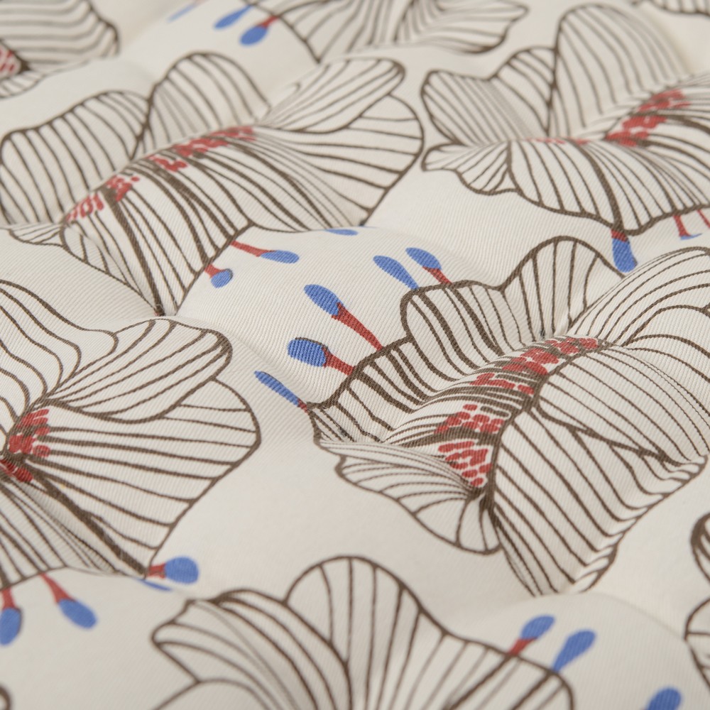 Подушка на стул из хлопка молочного цвета с принтом Цветы из коллекции Prairie – практичное и стильное украшение кухонной мебели. Дизайн изделия с крупными цветами станет ярким акцентом и гармонично впишется в современный интерьер. Подушку можно использовать в качестве подкладки на деревянные или металлические стулья. Благодаря плотному наполнителю из полиэстера изделие не потеряет свою форму. ! Максимальная температура стирки 40º C ! Гладить при максимальной температуре 150º C ! Барабанная сушка запрещена ! Не отбеливать ! Возможна сухая чистка