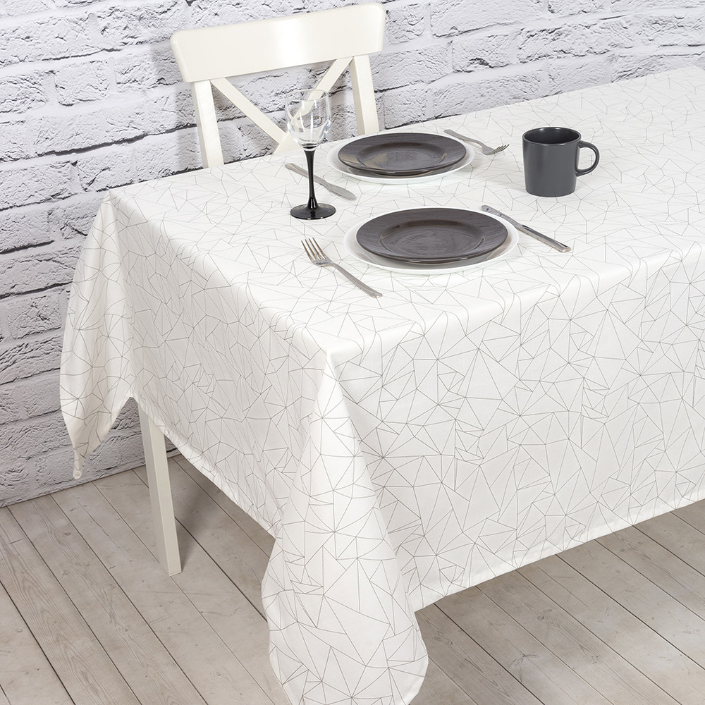 Скатерть прямоугольной формы является удобным и стильным элементом декора вашей кухни. Изделие выполнено из мягкой натуральной экологичной ткани, выполняет декоративную функцию сервировки стола, завершает концепцию оформления столовой зоны в едином стиле: шторы для кухни, подушки на стул, декоративные подушки. Также скатерть защищает поверхность стола от загрязнений и смягчает звук от соприкосновения приборов о столешницу. Изделие следует стирать при температуре не выше 30°С, применять мягкие моющие средства, отпаривать на среднем режиме с изнаночной стороны.